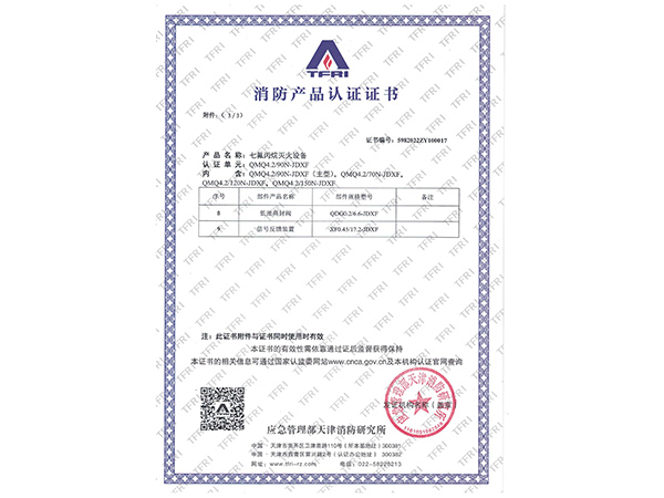 | 滅火劑名稱 | 七氟丙烷(HFC-227ea) |